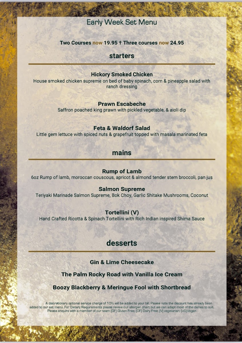 Welcome to The Palm Brasserie, a gem located in Deane, Basingstoke, where exquisite dining meets a sophisticated atmosphere. This charming establishment offers a versatile menu that caters to all palates, including vegetarian and gluten-free options. Guests rave about dishes like the Goan Chicken Curry and Truffle Chicken, both celebrated for their rich flavors and generous portions. The Okra fries have also garnered attention, highlighting the thoughtful selection available.